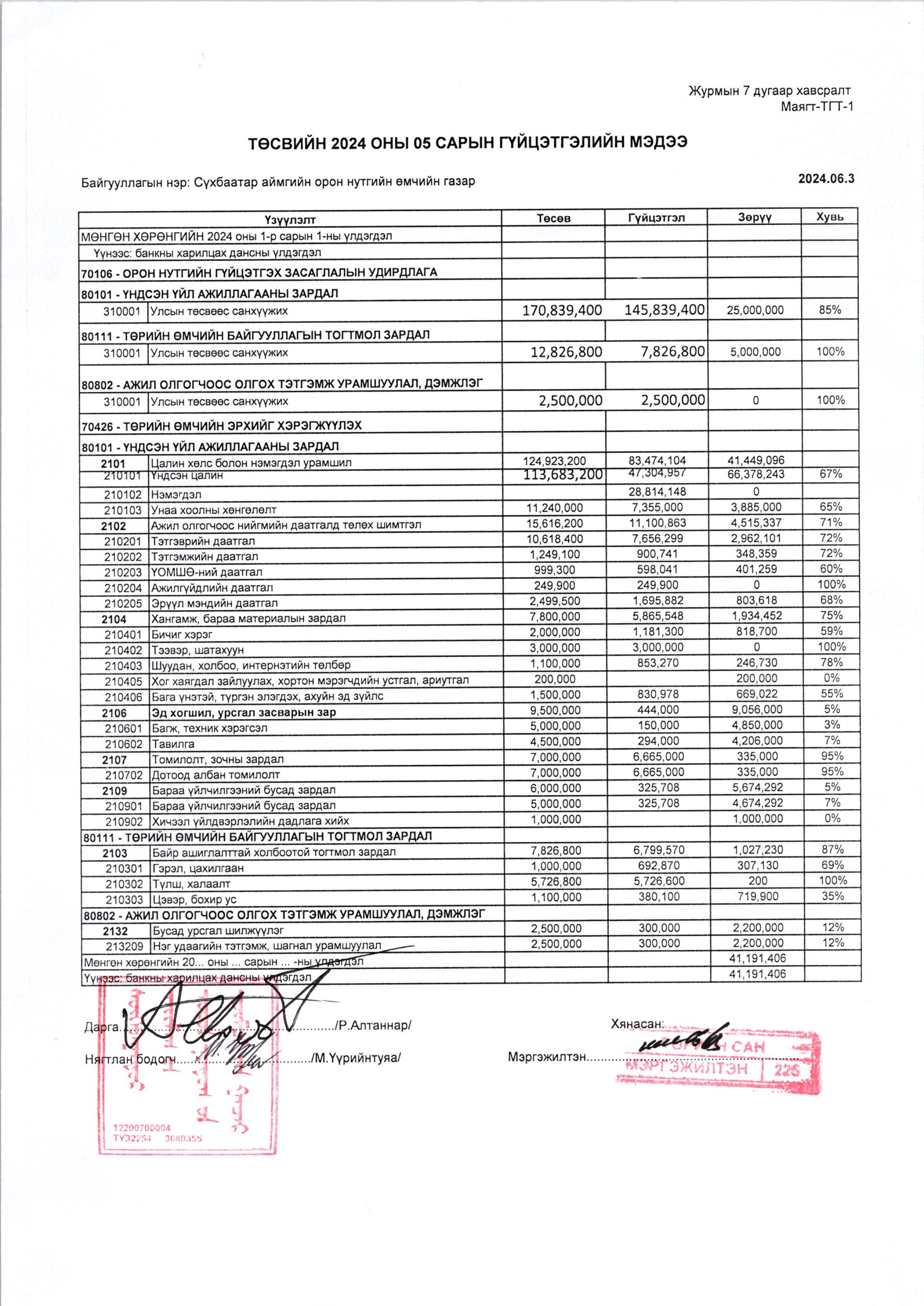 Төсвийн гүйцэтгэлийн 05-р сарын мэдээ. 2024 он